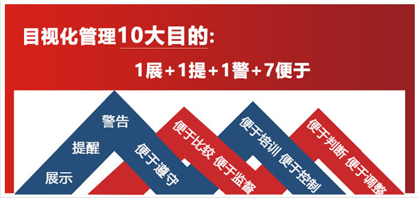 整潔、規(guī)范、安全、有序的生產(chǎn)環(huán)境。標示管理界限,標明正常與異常的定量管理連界限,使之一目了然。 |